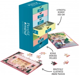 De JUMBO Pieceful Mind-set biedt 6 afzonderlijke puzzels van elk 54 stukjes, ontworpen om de geest te kalmeren en te inspireren tot regelmatige ontspanning. Elke mini-puzzel heeft compacte afmetingen en is ideaal voor korte dagelijkse momenten van rust.