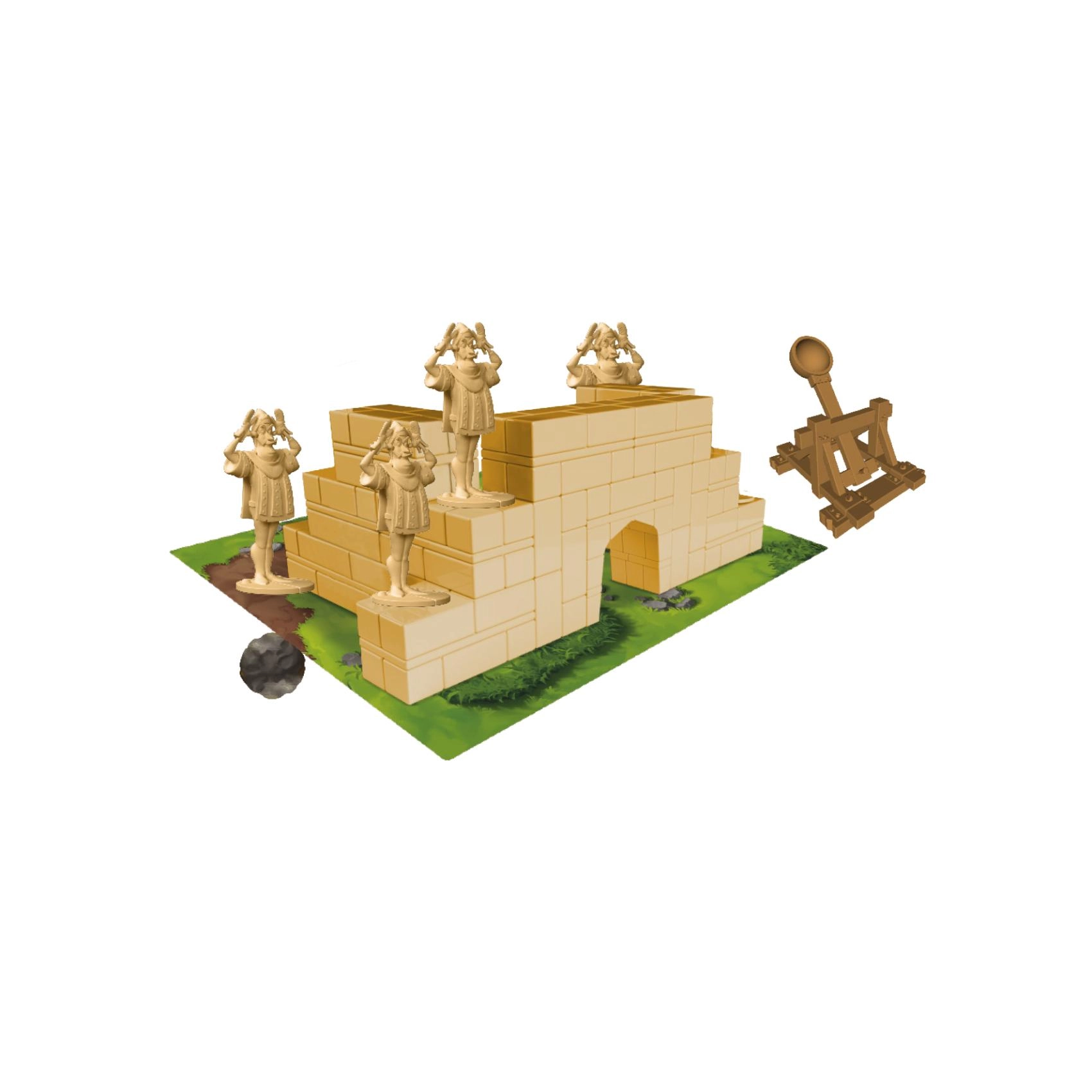 - Katapulten, pionnen/verdedigingseenheden, kaarten, kasteeldelen (afhankelijk van verpakking)