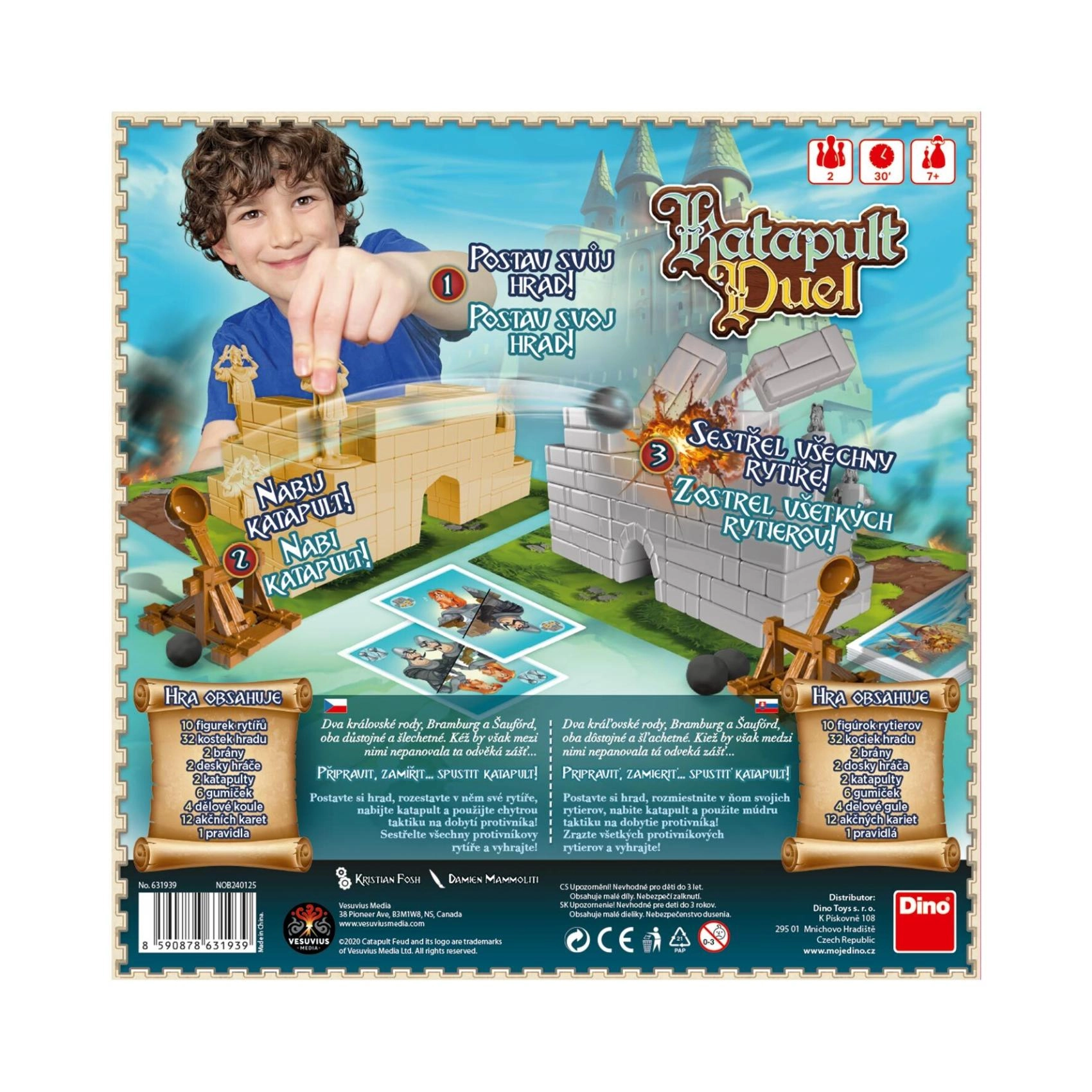Maak je klaar voor een spannend kasteelenduel! In het familiespel Katapult Duel bouw je vestingen, plaats je verdedigingseenheden en val je je tegenstander aan met katapulten. Eenvoudige spelregels, tactische kaarten en snelle potjes voor 2 spelers maken dit spel ideaal vermaak voor kinderen vanaf 7 jaar en volwassenen.