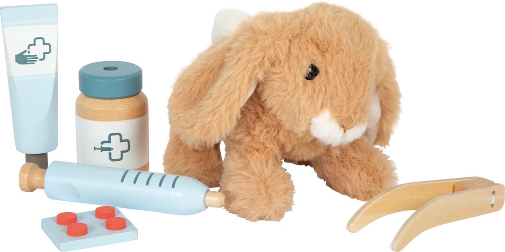 De praktische tas dient als draagbox voor het konijntje en als organizer voor alle instrumenten. Dankzij overzichtelijke vakken en een rits is alles netjes op zijn plek, klaar voor onderzoek. De set is gemaakt van kwaliteitsmaterialen (pluche, hout, textiel, papier, kunststof) en ontworpen voor kleine kinderhanden om makkelijk vast te pakken.
