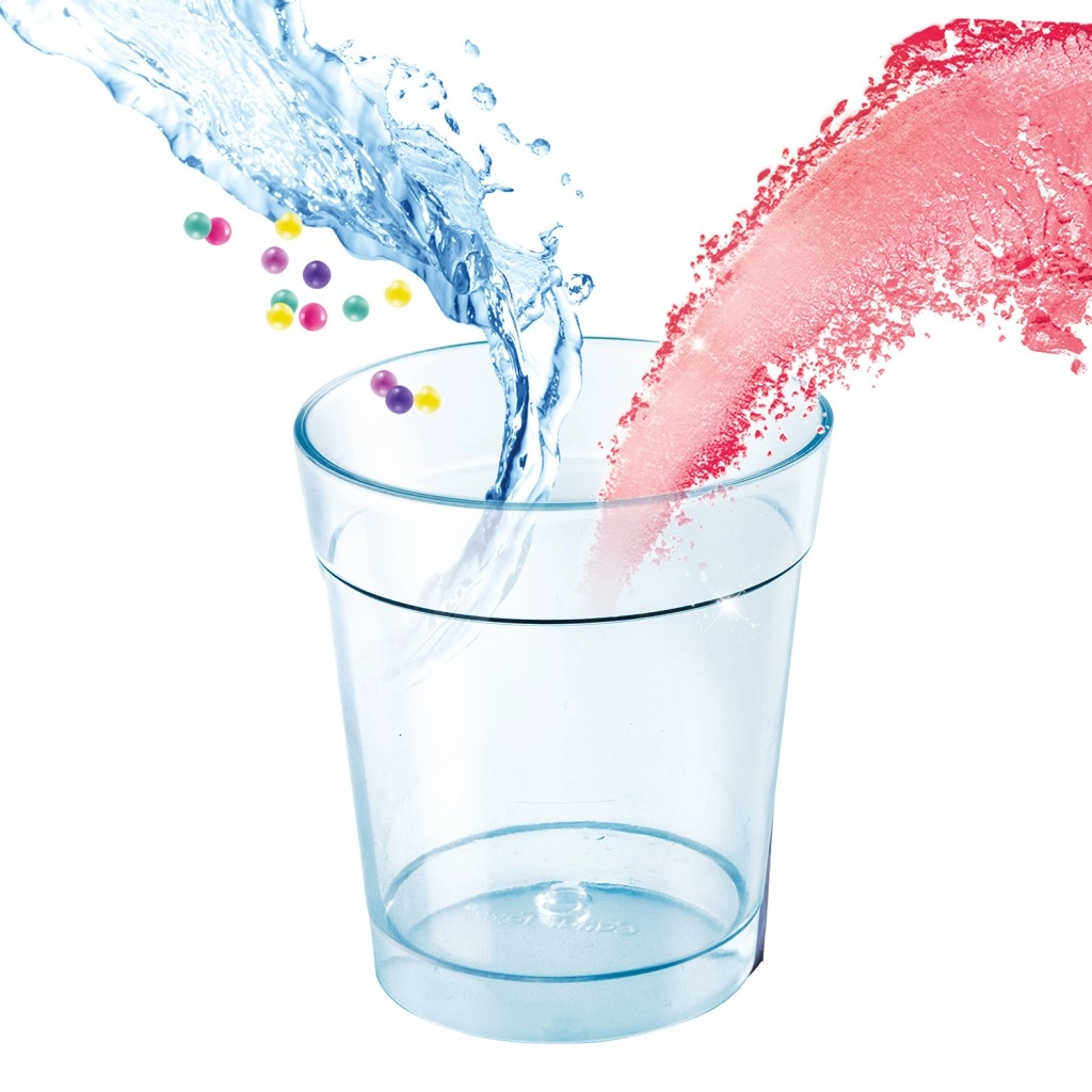 Alles bereid je direct in het bekertje: voeg het poeder toe, schenk water tot aan de gemarkeerde streep, sluit af en schud krachtig. Na het openen even laten rusten en je kunt rekken, knijpen en vormen voor sensorische ontspanning en creatief spel.