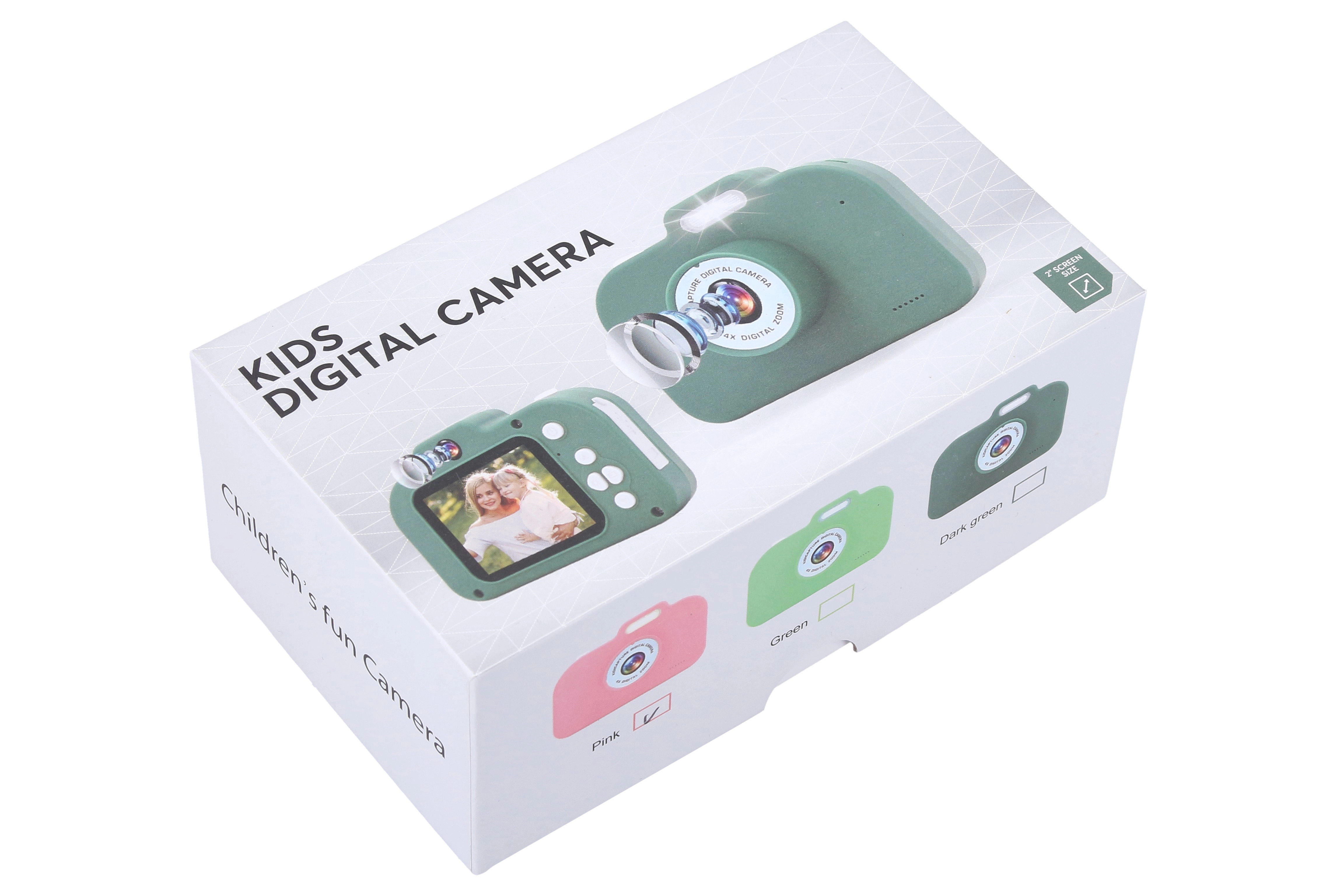 De camera heeft een overzichtelijk 2,0"-display, eenvoudige bediening en een brede set fun-features: timer 10/5/2 s, verschillende frames, filters en grappige animaties, vervormingseffecten en zelfs ingebouwde spelletjes en een MP3‑speler. De robuuste siliconen hoes met eenhoornthema beschermt het toestel bij dagelijks gebruik.