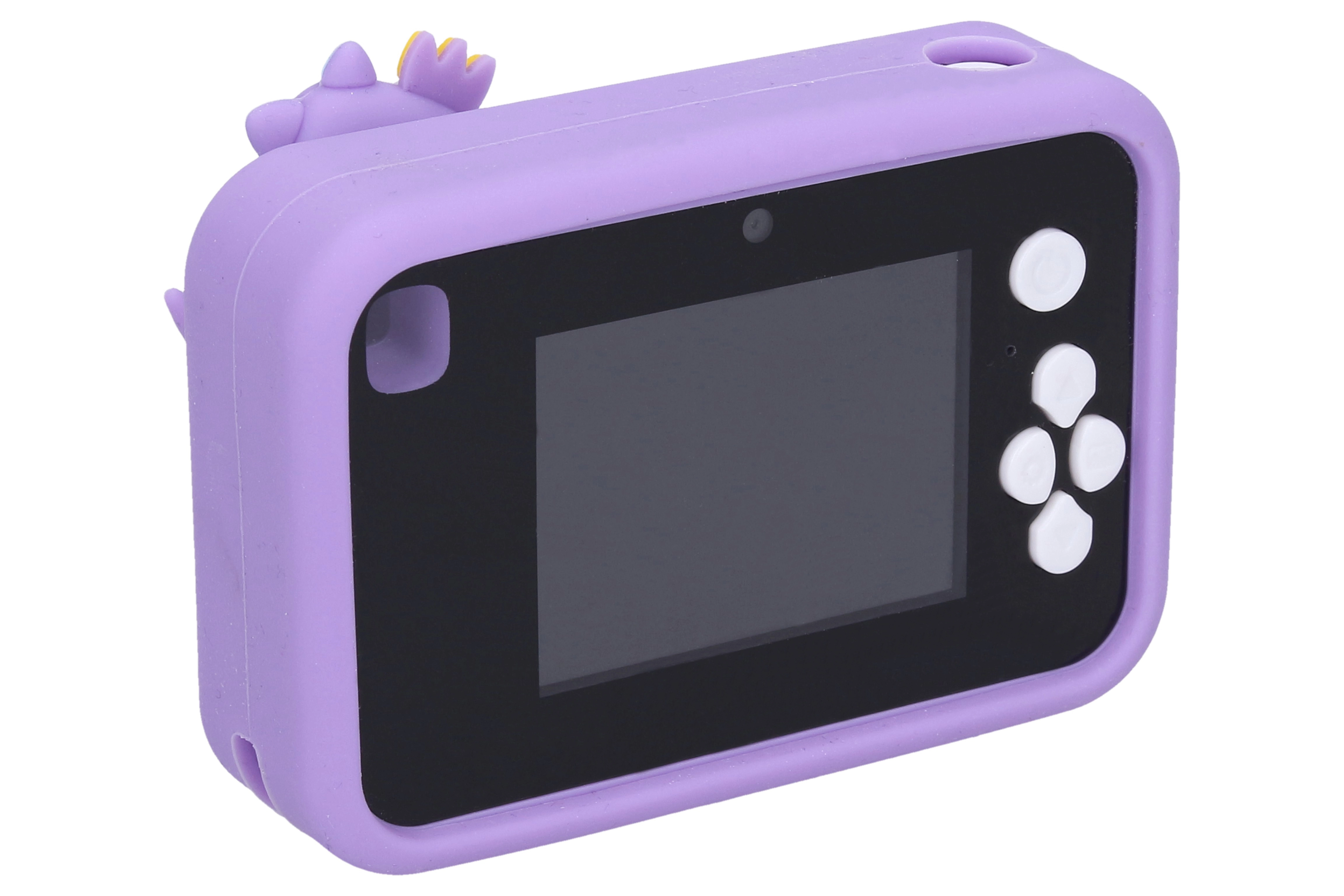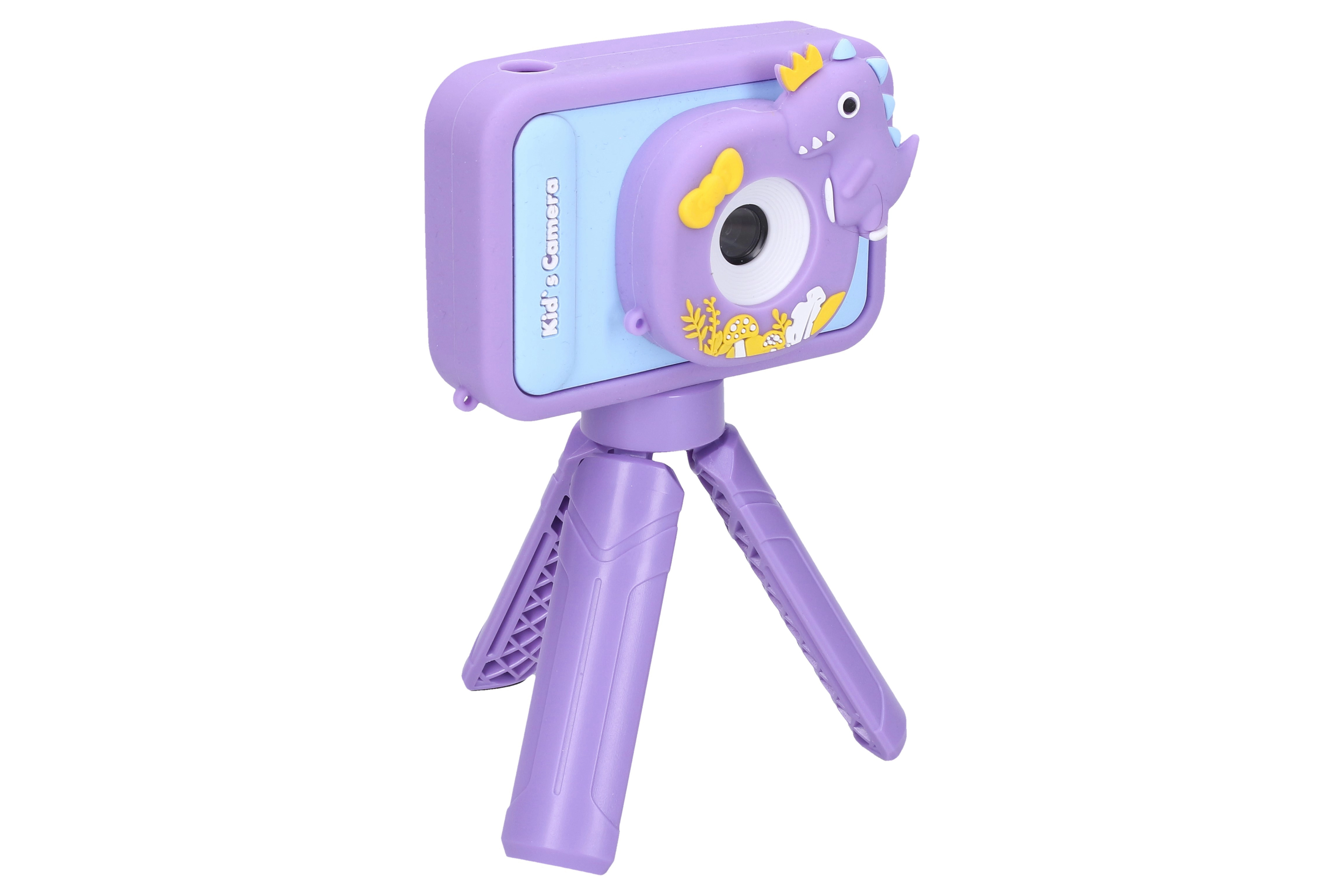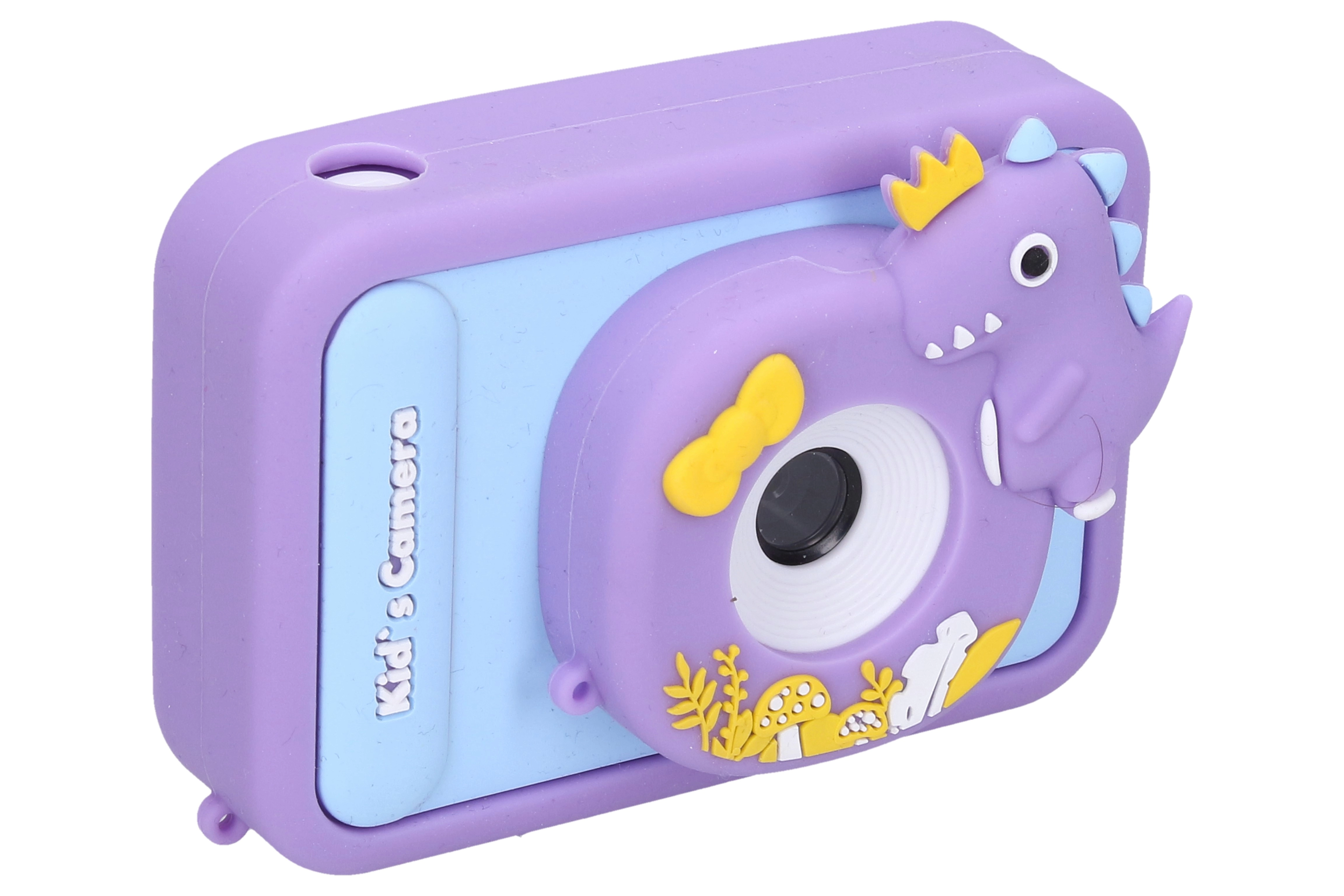 Leg kindermomenten eenvoudig en leuk vast met deze kleurrijke kindercamera met dinosaurusmotief. Biedt 48 Mpx foto’s, Full HD-video, 2,4"-display, selfiecamera, 4× digitale zoom, speelse filters en kaders en wordt geleverd met een siliconen hoes, statief, USB‑C-kabel en draagriem voor veilig meenemen.