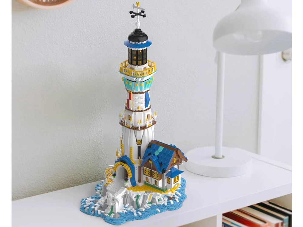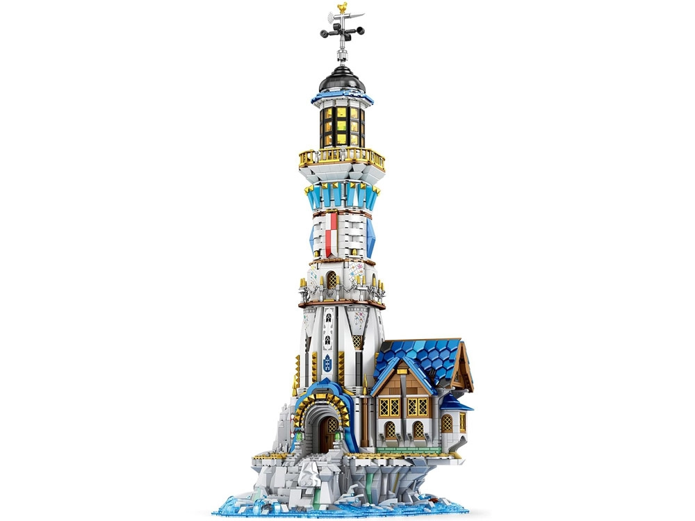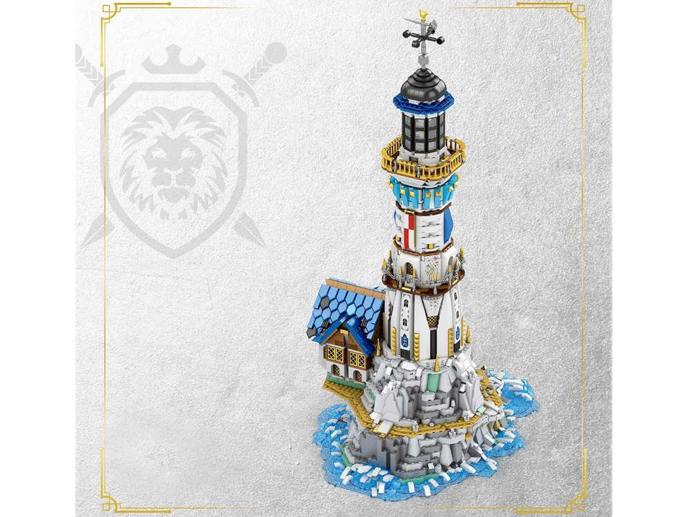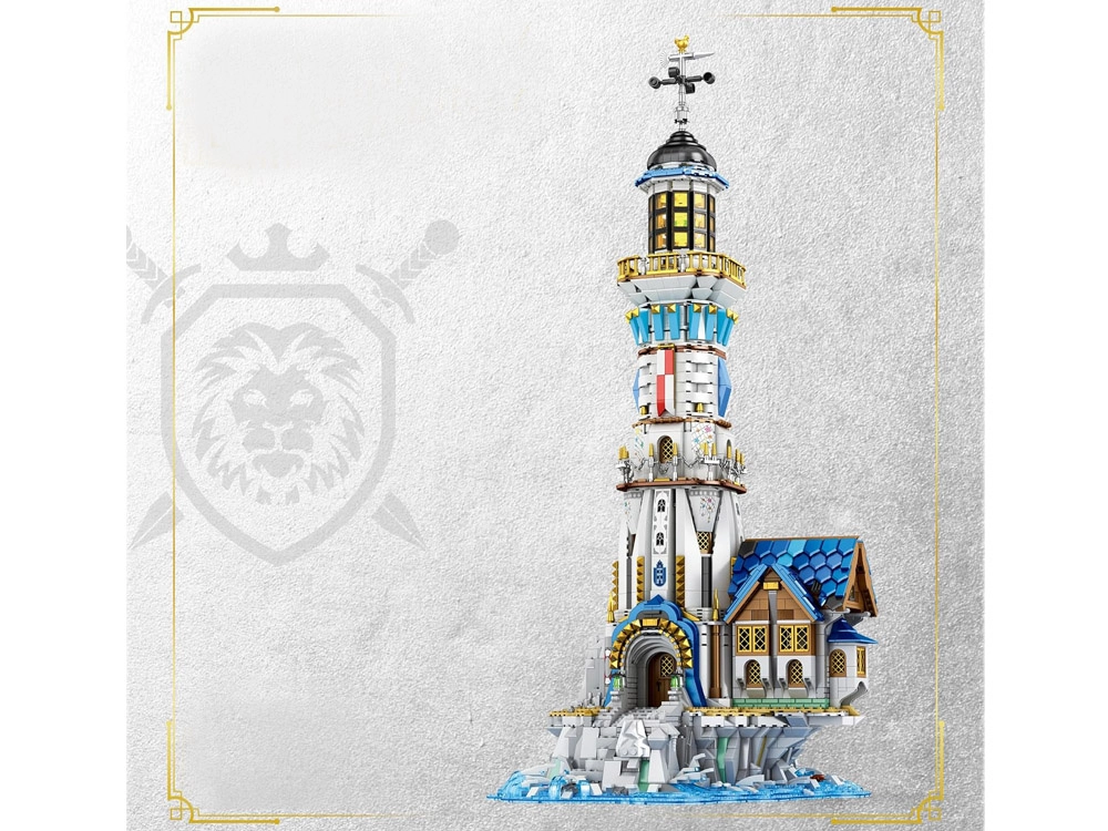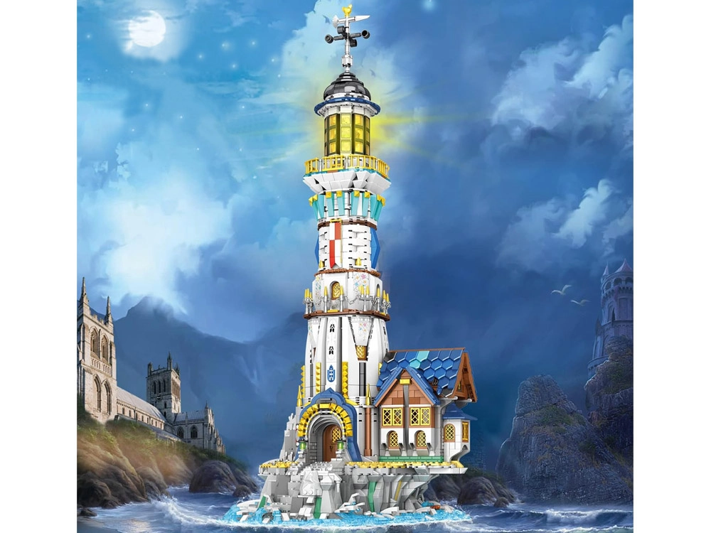 Bouw een indrukwekkend model uit de European Century-serie: een middeleeuwse vuurtoren op een rotsachtige kust met het huisje van de wachter, getextureerd terrein en rijke architectonische details. Dankzij de LED-lamp in de lantaarn en het draaibare bovensegment van de toren oogt het model realistisch en wordt het een pronkstuk in elke collectie.