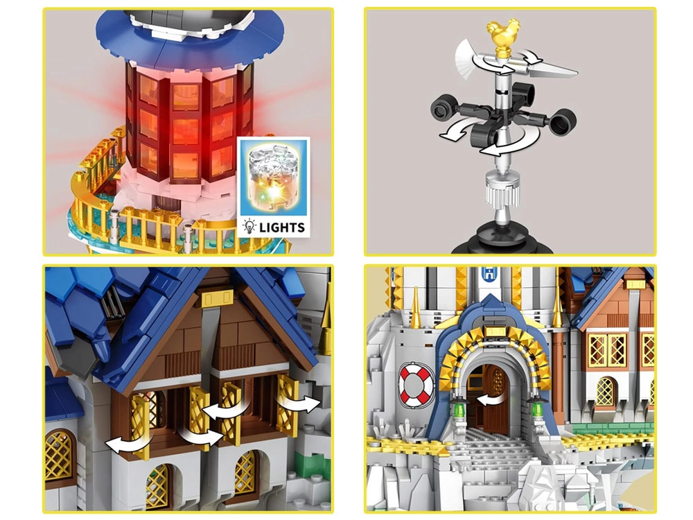 Het bovenste segment van de toren kan worden gedraaid, wat de indruk van een functionerende vuurtoren versterkt en het model extra interactiviteit geeft.