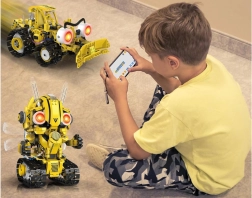 De Robots Pro 5-in-1 bouwset is de ideale combinatie van leren en plezier. Kinderen trainen fijne motoriek, logica en basismechanica tijdens het bouwen van vijf verschillende modellen: de Trum Warrior-robot, een straaljager, een bulldozer, een rupsrover en een voertuig met mechanische arm. Elke ombouw brengt nieuwe uitdagingen en resulteert in een robuust model met bewegende delen en realistische effecten.