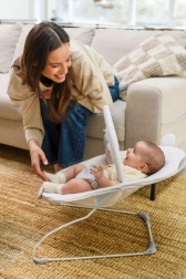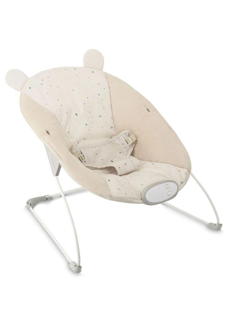 De afneembare speelboog met twee sensorische speeltjes ondersteunt de ontwikkeling van zicht en tast, terwijl de 3-puntsgordel en stabiele poten met antislipdoppen voor veiligheid zorgen. De hoes haal je eenvoudig af en was je in de wasmachine – zo blijft het ligstoeltje schoon en klaar voor dagelijks gebruik.