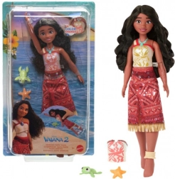 De Vaiana-pop, geïnspireerd op de Disney-film Vaiana 2, nodigt kinderen uit voor avonturen op de open zee. Haar topje verandert van kleur bij contact met warm water, zodat je keer op keer van een magische transformatie kunt genieten. Met de knop in de taille bewegen de benen en lijkt het alsof de pop zwemt – ideaal voor spel in en buiten het water.