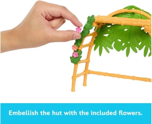 Deze themaset brengt de sfeer van een tropisch eiland tot leven: een knus bladerdak, een kom en badje voor Pua, bloemen ter decoratie en praktische verzorgingsaccessoires. Kinderen kunnen het hutje versieren, Pua in bad doen en verhalen bedenken met Simea, het jongere zusje van Vaiana, geïnspireerd door de film Disney Moana 2.