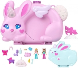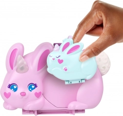 Ontdek magisch speelplezier met de compacte handtas POLLY POCKET Konijntjes – Sprookjesrijk. Twee verbonden werelden in een schattig konijnendesign, 2 micropopjes en 12 accessoires voor eindeloos reisspel. Druk op de neus van de moederkonijn, open beide helften en ga op avontuur met een magisch kasteel, een regenboog en diertjes.