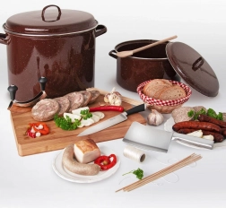 Praktische en duurzame geëmailleerde pan in bruine kleur, een uitstekende keuze voor huishoudens en gastronomie. Dankzij de grote inhoud van 20 liter kookt u gemakkelijk soepen, bouillons, knoedels of steriliseert u weckpotten. Het geëmailleerde oppervlak is glad, hygiënisch en eenvoudig te onderhouden.