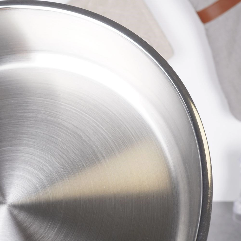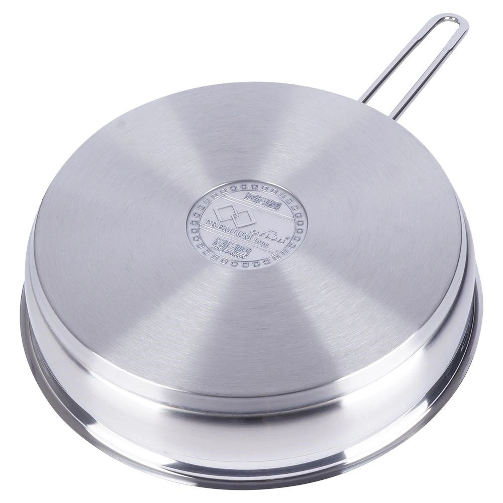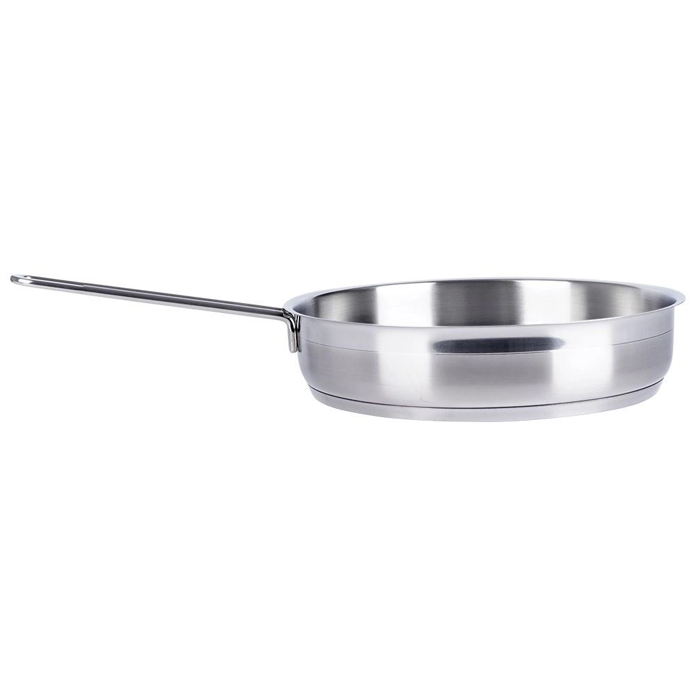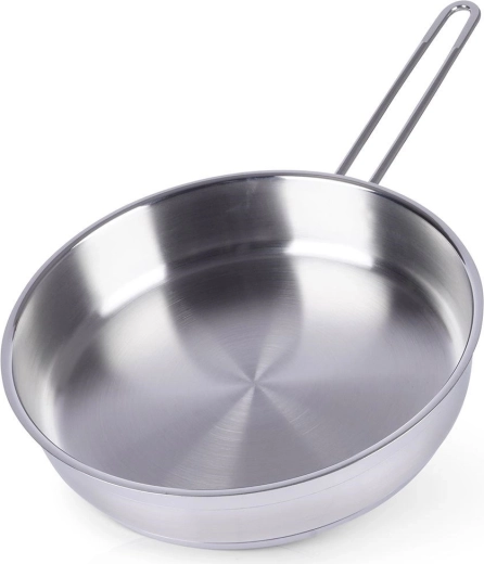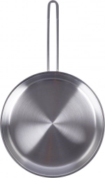Deze roestvrijstalen pan met tijdloze uitstraling is een uitstekende keuze voor vlees, groenten en pannenkoeken. Gemaakt van hoogwaardige roestvrijstalen met matte afwerking en een elegante glanzende bies aan de bovenzijde, voor een lange levensduur en corrosiebestendigheid. Massieve wanden en een stabiele constructie zorgen voor een gelijkmatige warmteverdeling en betrouwbare prestaties bij bakken en sauteren.