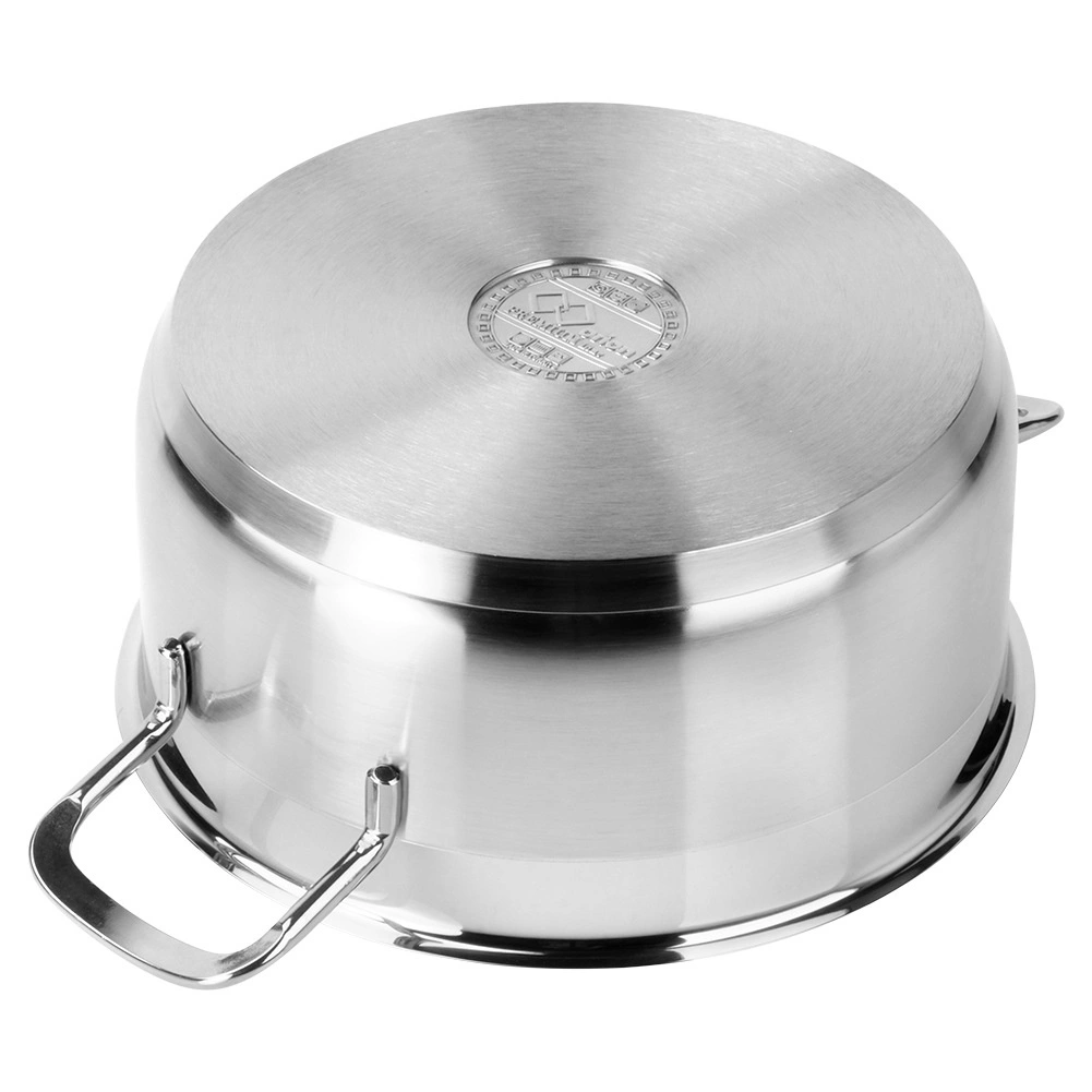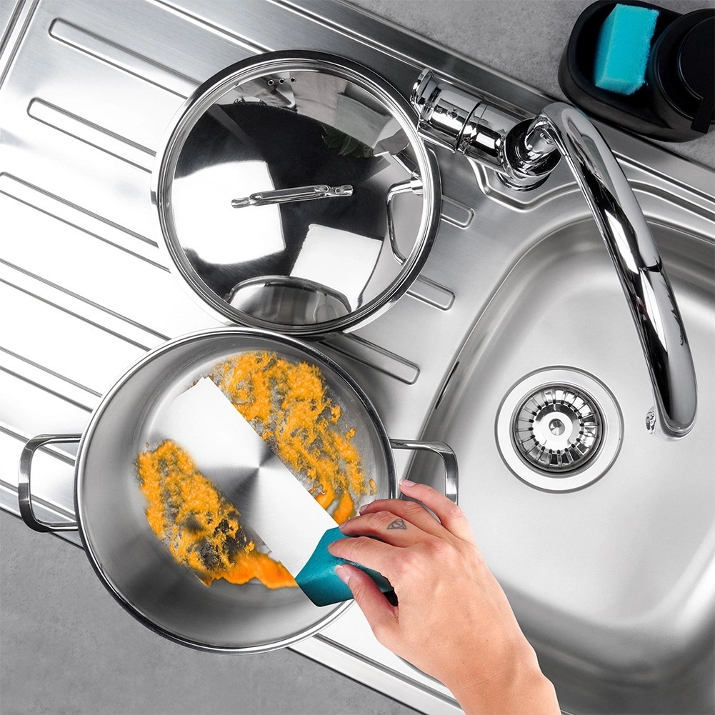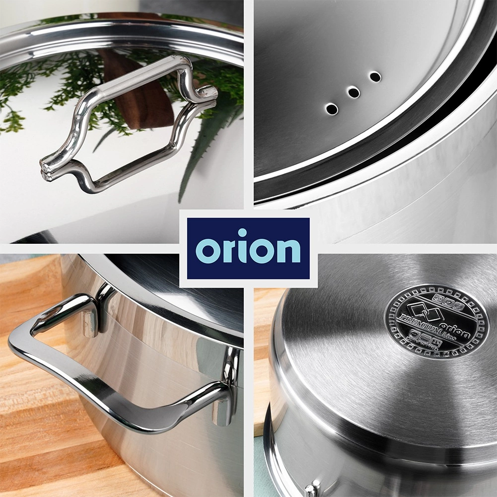 Hoogwaardig roestvrij staal 304 garandeert een lange levensduur, hygiëne en eenvoudige reiniging – de pannen zijn vaatwasmachinebestendig.