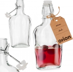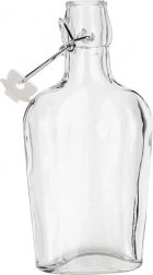 Praktische glazen fles met een inhoud van 180 ml en een klem-/beugelsluiting voor veilige en stijlvolle opslag van dranken. Ideaal voor huisgemaakte wijnen, likeuren, siropen en bier. Stevig, dik glas laat de inhoud mooi uitkomen, terwijl de afdichtende clipsluiting lekken voorkomt en de versheid verlengt. Afmetingen van de fles: 9 × 4 × 20 cm.