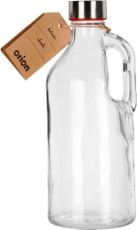 Stijlvolle glazen fles met een inhoud van 1,15 l, voorzien van een praktische handgreep en een metalen schroefdop. Ideaal voor het dagelijks serveren van dranken. Biedt een retrodesign, duurzame uitvoering, siliconen afdichting voor 100% lekdichtheid en comfortabel schenken en vervoeren.