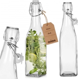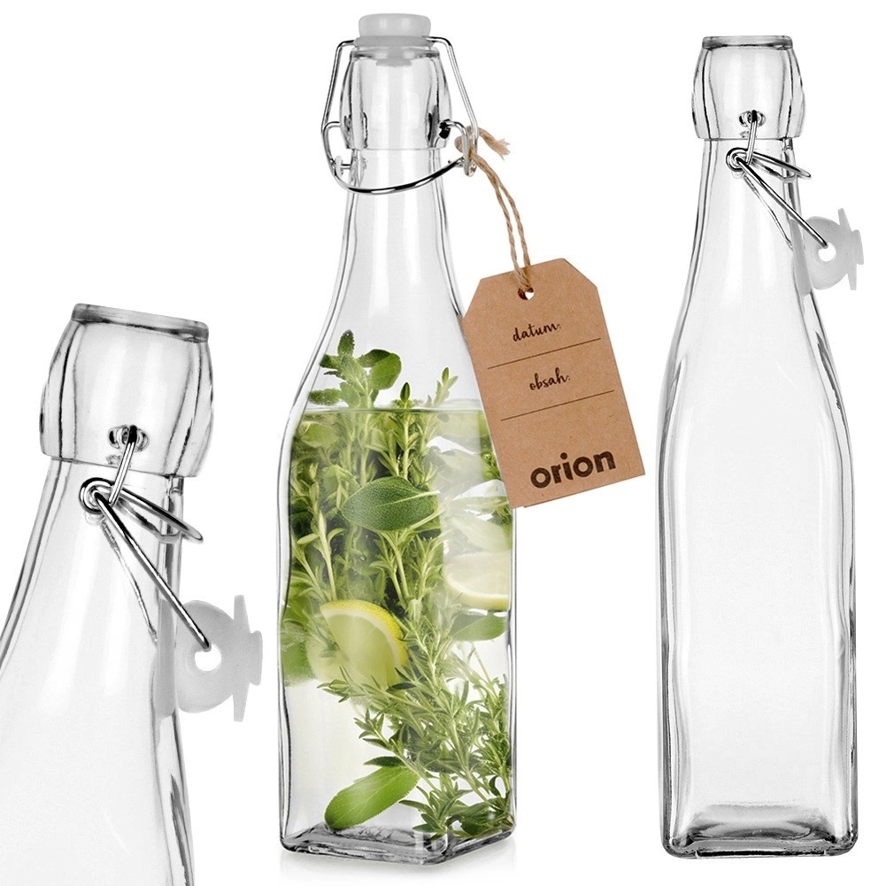 Elegante glazen fles in retrostijl met een inhoud van 530 ml met een strakke beugelsluiting en een sterke siliconen afdichtingsring. Ideaal voor limonades, sappen, ijsthee en zelfgemaakte siropen, wijn, likeuren en oliën. Het transparante gedecoreerde glas komt prachtig tot zijn recht op elke tafel.