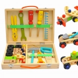 Deze veelzijdige set stimuleert fijne motoriek, fantasie en technisch inzicht bij kinderen. Dankzij de stevige houten uitvoering en de lichte koffer kunnen kleine bouwers hun gereedschap overal mee naartoe nemen en op elk moment beginnen te creëren.