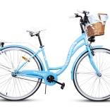 Stijlvolle stadsfiets 28" in de elegante tint Light Blue, ideaal voor comfortabele ritten door de stad. Voorzien van een stevig stalen frame, betrouwbare stadsbanden 28" x 1,75 met witte zijwand, lichte aluminium remhendels en een praktische achterdrager voor kleine spullen. Met een draagvermogen tot 120 kg en een fietsgewicht van ca. 15 kg is dit een uitstekende keuze voor dagelijks woon-werkverkeer en vrijetijdsritten.