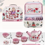 Deze betoverende theeset van metaal stimuleert de fantasie en het samen spelen. Alles is veilig opgeborgen in een stevig koffertje, wat het dragen en opbergen makkelijk maakt. Een geweldig cadeau-idee voor kinderen die van serveren en rollenspel houden.