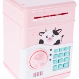 Een leuke kinderspaarpot in de vorm van een kluis met koeienmotief stimuleert kinderen om te sparen. Zodra je een bankbiljet aanbiedt, trekt de kluis het automatisch naar binnen en speelt een van de 7 melodieën af. Een geweldig cadeau voor kinderen vanaf 3 jaar met eenvoudige voeding via 3× AA-batterijen.