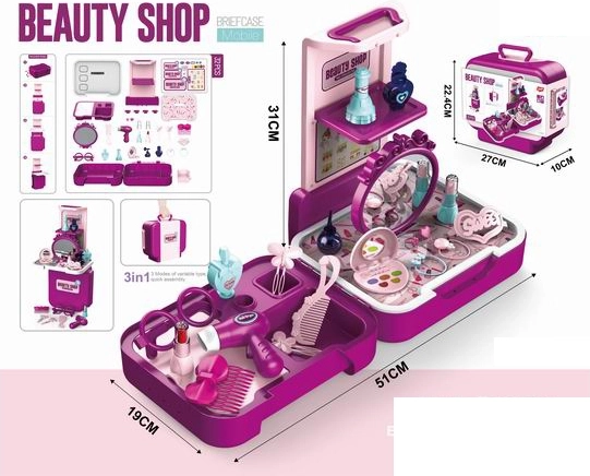 Deze magische koffer verandert elke kamer in een kleine schoonheidssalon. Na het openen ontstaat er een overzichtelijke kaptafel met spiegeltje en werkblad, waar kinderen al hun accessoires kunnen opbergen. Dankzij de compacte afmetingen is de koffer ideaal voor thuis en onderweg.