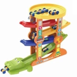 Ontdek actievol plezier met de kleurrijke krokodillenbaan. Kinderen kunnen de autootjes aan de start plaatsen, de lanceerder gebruiken en kijken hoe ze over de baan racen. De compacte afmetingen en doordacht ontwerp zorgen voor makkelijk meenemen en opbergen.