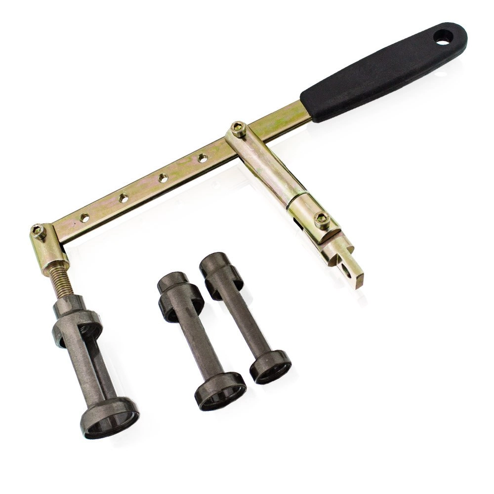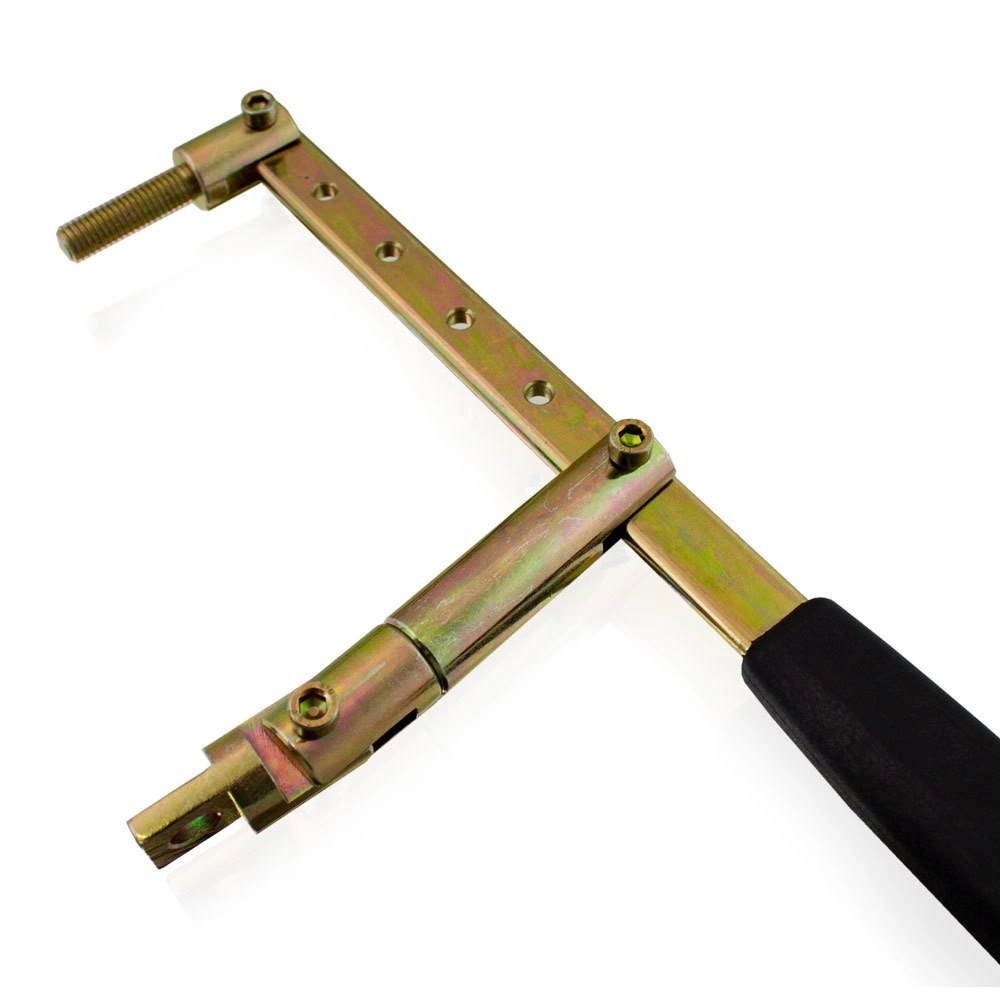 Deze universele klepveercompressor maakt het mogelijk om de veer veilig en precies samen te drukken en de borgwiggen van de klep los te maken, zodat u klepsteelafdichtingen kunt vervangen zonder de cilinderkop te verwijderen. Ideale keuze voor garages en doe-het-zelf monteurs die op zoek zijn naar een efficiënte en betrouwbare oplossing voor 8V-, 12V- en 16V-motoren met bovenliggende nokkenas (OHC).