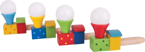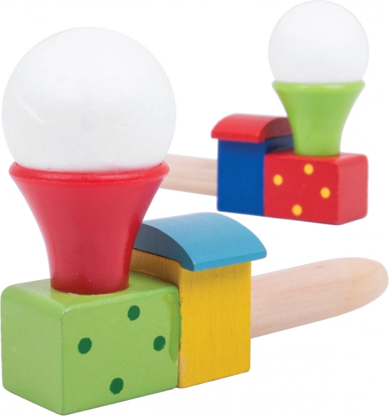 Deze kleurrijke houten locomotief met ballon verandert een simpele blaas in een klein wonder. Kinderen oefenen hun ademhaling en controle, kijken hoe het witte balletje boven de schoorsteen zweeft en ontwikkelen zo coördinatie en geduld. Ideaal voor korte speelpauzes of langere geconcentreerde pret.