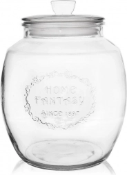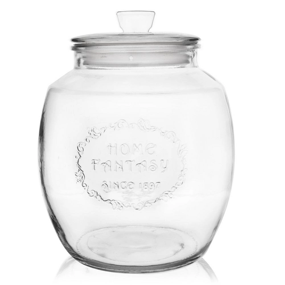 Praktische glazen pot met een inhoud van 2,2 l en een afsluitend deksel, ideaal voor het bewaren van droge etenswaren zoals koekjes, pasta, koffie of kruiden. Het transparante, dikwandige glas maakt snelle controle van de inhoud mogelijk, terwijl de luchtdichte siliconenafdichting de versheid en het aroma langer behoudt. Het elegante reliëf “HOME FANTASY” geeft je keuken stijl.