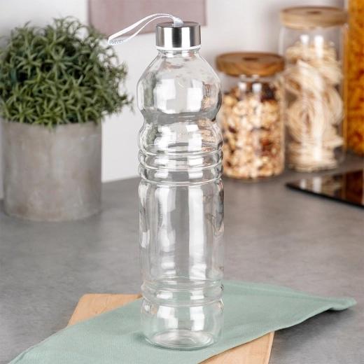 De stijlvolle en duurzame glazen waterfles met een inhoud van 1,1 liter is een betrouwbare metgezel voor de hele dag. Dankzij het kwaliteitsglas en de metalen dop met siliconen afdichting is hij betrouwbaar lekdicht, zodat je hem zonder zorgen in een tas of rugzak kunt meenemen. Het transparante lichaam maakt eenvoudige controle van de inhoud mogelijk en de fles is perfect voor fruitinfusies, huisgemaakte limonades en verse sappen.