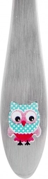 Schattig en praktisch kinderbestek van roestvrij staal met een kleurrijk uilenmotief. Ideaal om zelfstandig eten te leren – veilig ontwerp zonder scherpe randen, licht en aangepast aan kleine handjes. De set bevat een lepel, vork en mes in een formaat geschikt voor kinderen vanaf 3 jaar.
