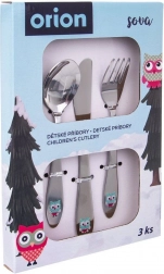 Kinderbestek van roestvrij staal met uilenmotief, 3 stuks
