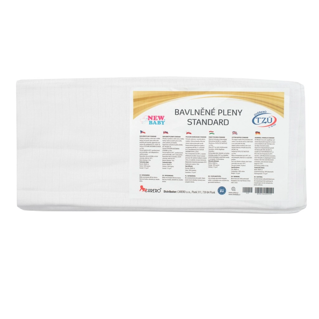 Praktische en zachte katoenen baby luiers met afmetingen 80 × 80 cm in een verpakking van 10 stuks. Gemaakt van 100% katoen met een gewicht van 115 g/m² voor uitstekende absorptie en zachtheid. De luiers hebben 2 stevige en 2 omgezoomde randen voor een langere levensduur en vormvastheid. De kwaliteit wordt bevestigd door het Textieltestinstituut in Brno. Tsjechisch merk.