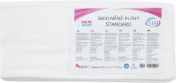 Praktische en zachte katoenen luiers met een afmeting van 70 × 80 cm van 100% katoen met een gewicht van 115 g/m². In de verpakking zitten 10 stuks van standaardkwaliteit, met 2 stevige en 2 omgestikte randen voor een langere levensduur. Getest door het Textieltestinstituut in Brno. Tsjechisch merk.