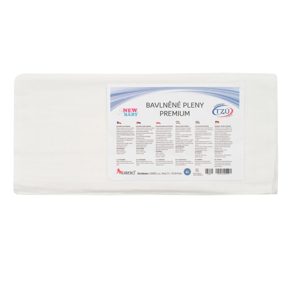 Kwalitatieve babyluiers van 100% katoen met een extra hoog gewicht van 150 g/m² voor uitzonderlijk absorptievermogen en duurzaamheid. De verpakking bevat 10 stuks met een afmeting van 70 × 80 cm. De luiers hebben 2 verstevigde en 2 omgestikte randen voor een langere levensduur en vormvastheid. Het product is gecontroleerd door het Textieltestinstituut in Brno. Tsjechisch merk.