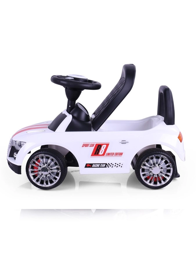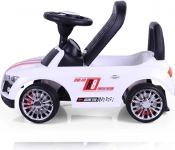 De stijlvolle kinderloopfiets Milly Mally Racer in het wit biedt de look van een sportwagen, uitstekende stabiliteit en veel plezier voor kinderen van 3 tot 6 jaar. Hij heeft een interactief stuur, draaibare voorwielen, praktische opbergruimte onder de zitting en kantelbeveiliging voor veiliger rijden. Het maximale draagvermogen is 25 kg.