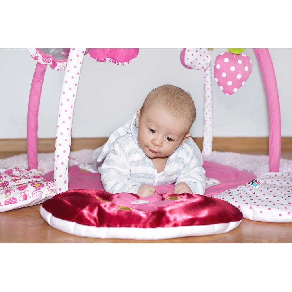Dit stijlvolle speelkleed in bloemvorm creëert een knus en veilig hoekje voor spelen en rust. Het zachte, gewatteerde oppervlak zorgt voor comfort op de buik en rug, terwijl de afneembare speelboog met schattige speeltjes motiveert om het hoofdje op te tillen, te strekken en de eerste ontdekkingen te doen.