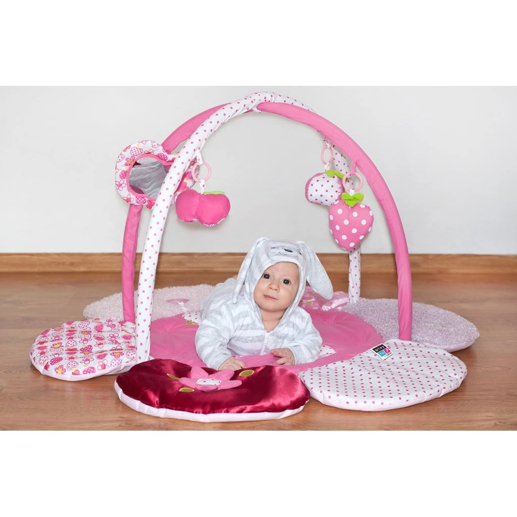 Het kleed nodigt uit om te ontdekken met diverse texturen en ritselende elementen die tast, zicht en gehoor stimuleren. De speeltjes aan de boog kunnen eenvoudig worden losgemaakt en meegenomen in de kinderwagen of het bedje. Met een diameter van circa 100 cm biedt het volop ruimte voor veilig bewegen en oefenen.