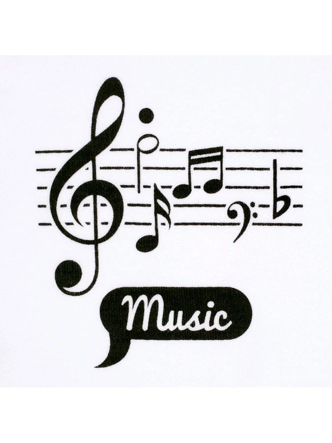 - All-over print met noten en muziekinstrumenten, opschrift “Music”