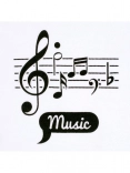 - Stijlvolle muziekprint – noten en muziekinstrumenten, opschrift “Music”.