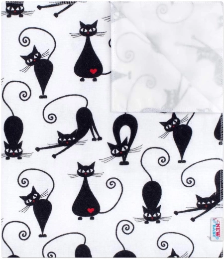 Waterdicht flanellen onderlegger voor baby NEW BABY wit met zwarte kat