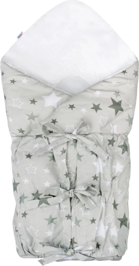 Deze klassieke inbakerdoek met vetersluiting NEW BABY keert terug in een modern jasje met grijze sterretjes. Hij bootst op natuurlijke wijze de omgeving van mama’s buik na, wat beter inslapen en een langere, ongestoorde slaap ondersteunt. Drie rijen linten zorgen voor eenvoudig en veilig vaststrikken naar behoefte en afhankelijk van de grootte van de baby.
