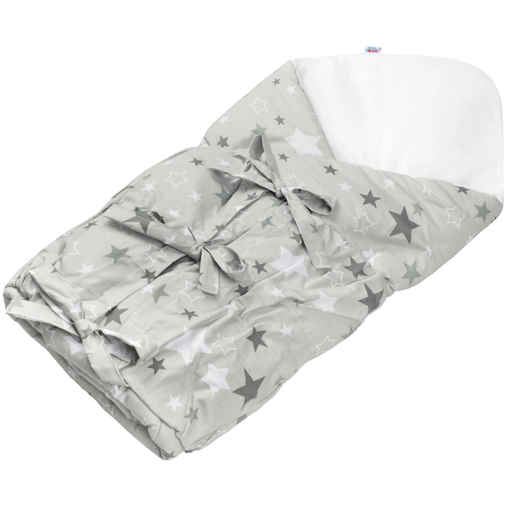 Klassieke vetersluiting-inbakerdoek New Baby grijs met sterretjes
