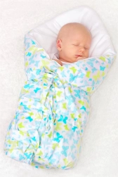 Ontdek de klassieke wikkeldoek met vetersluiting NEW BABY, die beproefd comfort terugbrengt in de eerste babyuitzet. Dankzij de 100% katoenen hoes is hij zacht voor de babyhuid, terwijl de anti-allergische vulling optimale warmte en hygiëne biedt. Drie rijen stevige linten houden je baby veilig ingebakerd zonder knopen of ritsen.