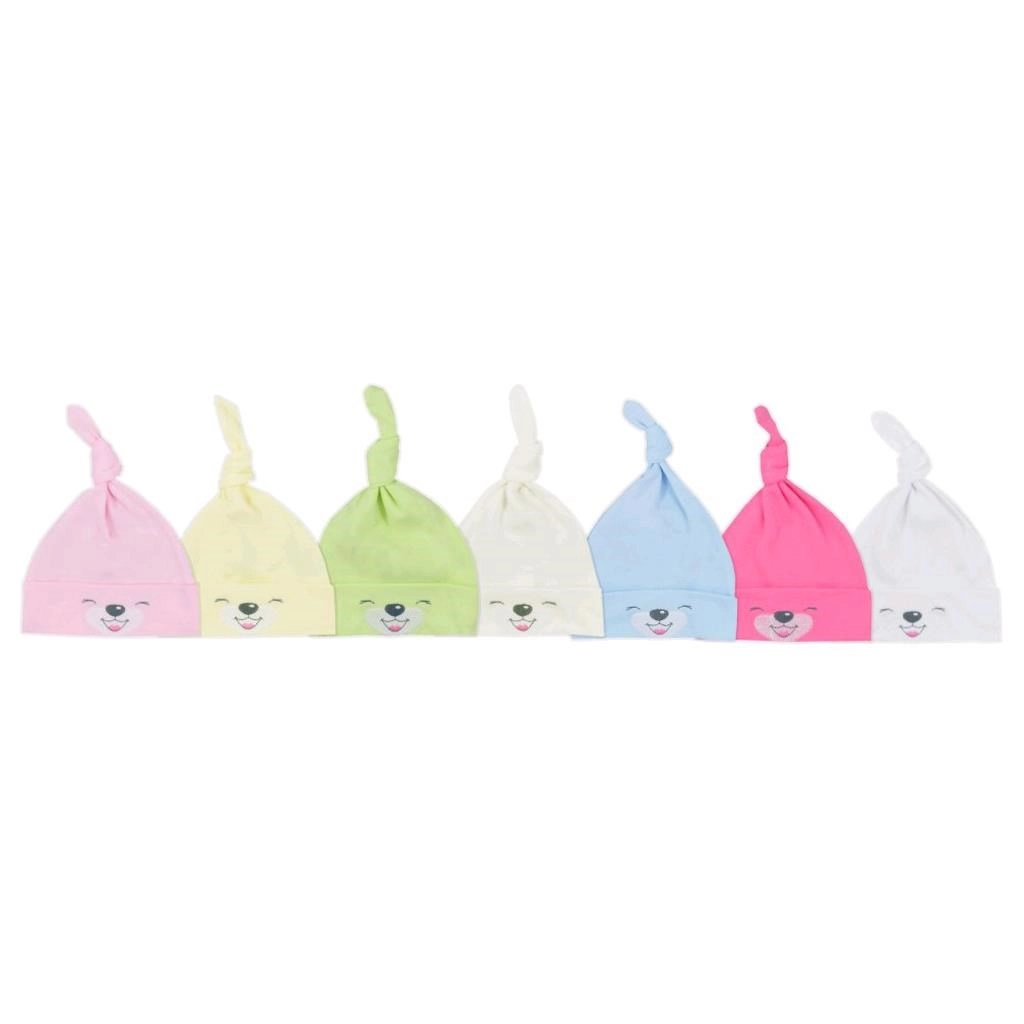 Schattig baby mutsje van 100% katoen met een motief van lachende gezichtjes en een lief knoopje bovenop. Het heeft een brede, niet-knellende boord, is zacht, aangenaam aan de huid en ideaal voor de gevoelige babyhuid.