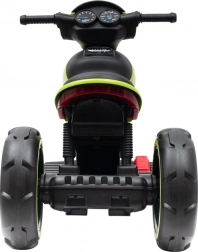De aandrijving wordt verzorgd door een tweede 6V/24W-motorenset met aandrijving op beide achterwielen, gevoed door een 6V/7Ah-accu. De motor is uitgerust met LED-verlichting (knipperend voor en achter), geluidseffecten en de mogelijkheid om favoriete liedjes af te spelen via USB/MP3. Ouders zullen de hoogwaardige afwerking, het eenvoudige onderhoud en het overzichtelijke opladen waarderen. Voor veilig rijden raden we het gebruik van een beschermende helm aan.
