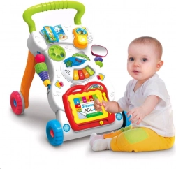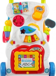 De BABY MIX loopwagen is de ideale keuze voor kinderen vanaf 12 maanden die leren lopen en graag ontdekken. Het interactieve paneel biedt volop plezier – van een mini piano met melodieën en een afneembare telefoon tot een kleurrijk boekje en een spiegeltje. Het afneembare tekentablet stimuleert creativiteit en traint de grip.