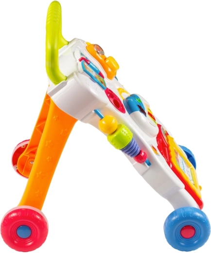 De stabiele constructie met vier wieltjes ondersteunt zekere stapjes en veilig bewegen in huis. Hoogwaardige kunststof afwerking, lichtjes in de vorm van een sterretje en maantje en zij-speeltjes zorgen voor langdurig vermaak én zintuiglijke ontwikkeling.