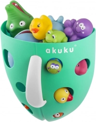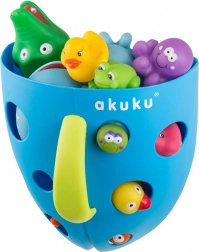 De praktische grijze AKUKU speelgoedmand voor in bad helpt orde te houden rond bad en douche. Dankzij de geperforeerde bodem en wanden loopt water snel weg en drogen speelgoed en accessoires gemakkelijk. De stevige handgreep vergemakkelijkt dragen en de zuignappen zorgen voor een veilige bevestiging op een glad oppervlak zonder te boren.
