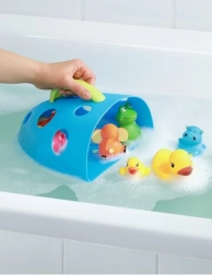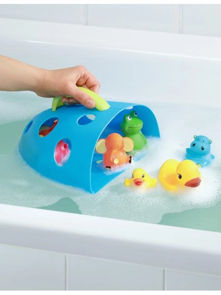 Geperforeerde wanden en bodem zorgen voor waterafvoer en luchtcirculatie, zodat het speelgoed na het bad snel droogt.